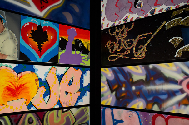 Nous avons eu la chance en y allant de tomber sur le collectionneur et organisateur de cette expo, A-D Gallizia, qui faisait une visite semi-privée. Il a gentiment accepté que nous nous joignons à eux. Qu’on soit d’accord ou pas sur la démarche (oui oui !! j’en vois déjà qui commencent à faire la mou sur la démarche antagoniste à ce que serait l’esprit du graff), c’était en tout cas extrêmement intéressant de l’entendre nous parler du mouvement, de nous retracer l’historique, de donner son point de vue.