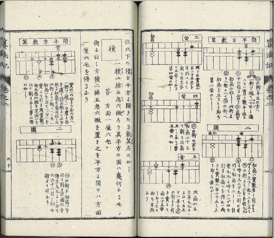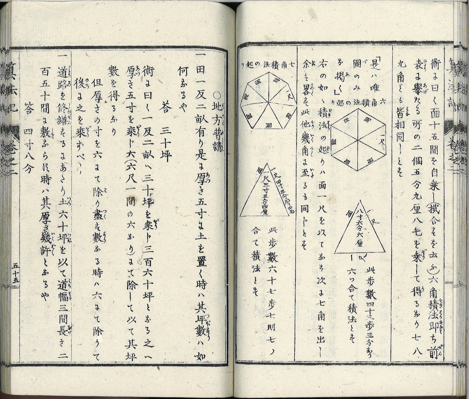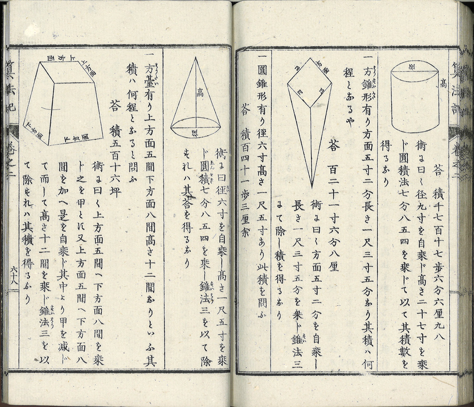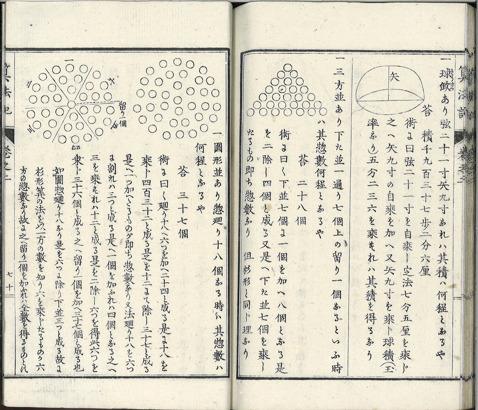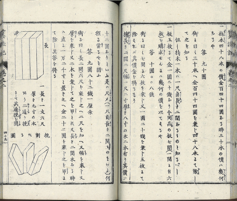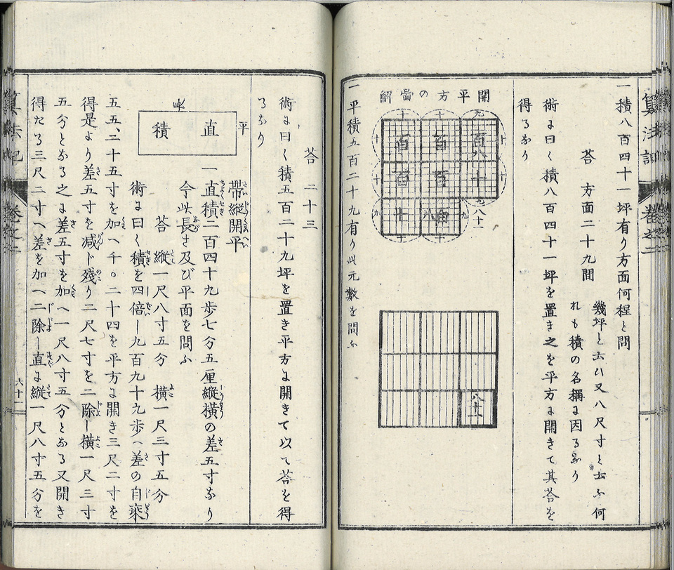 Livre de mathématiques datant de l’ère Meiji (1868- 1912). A cette époque le japon s’ouvert à l’occident, a créé un système éducatif public pour rattraper son retard, et a adopté les méthodes mathématiques occidentales.