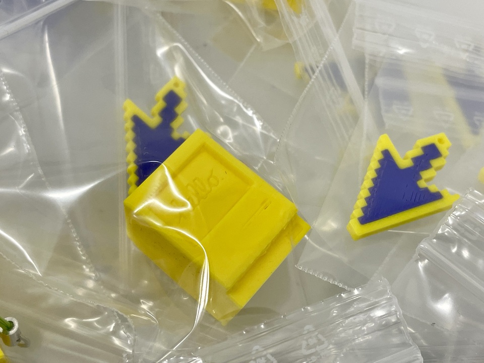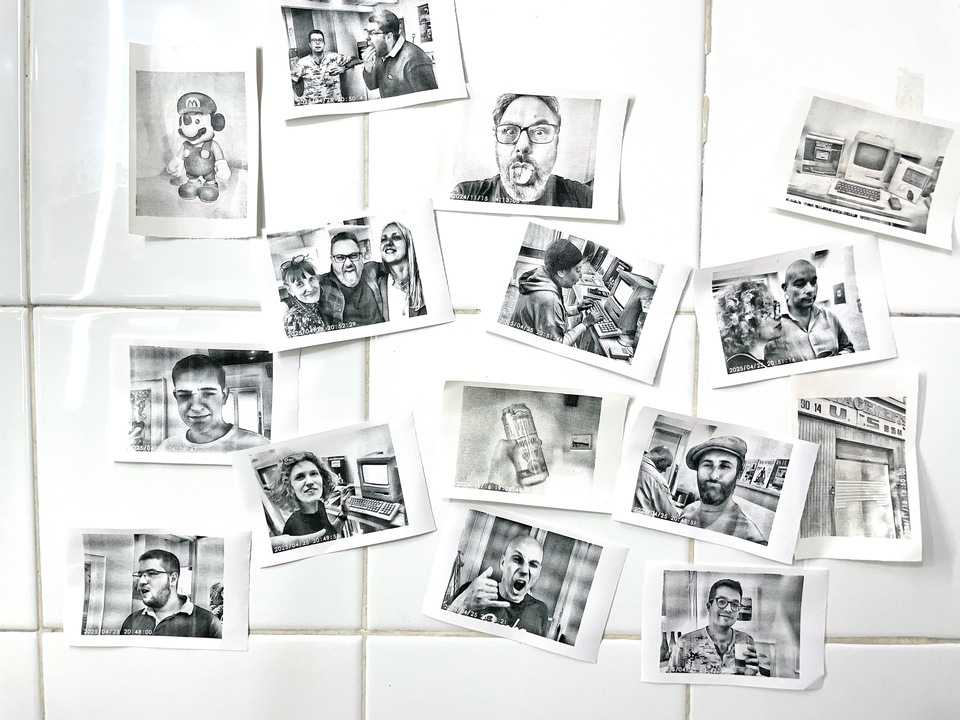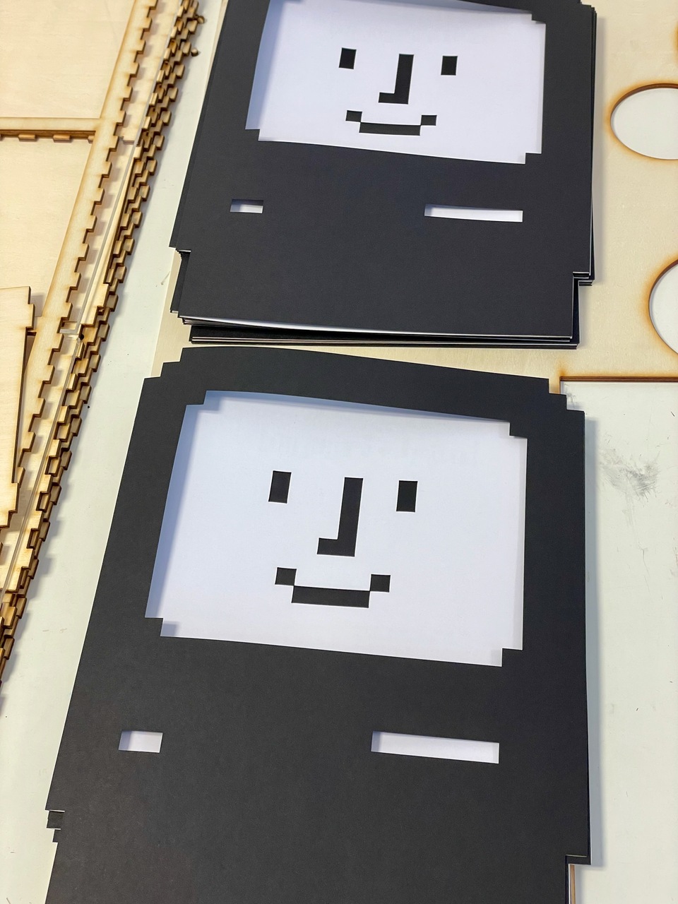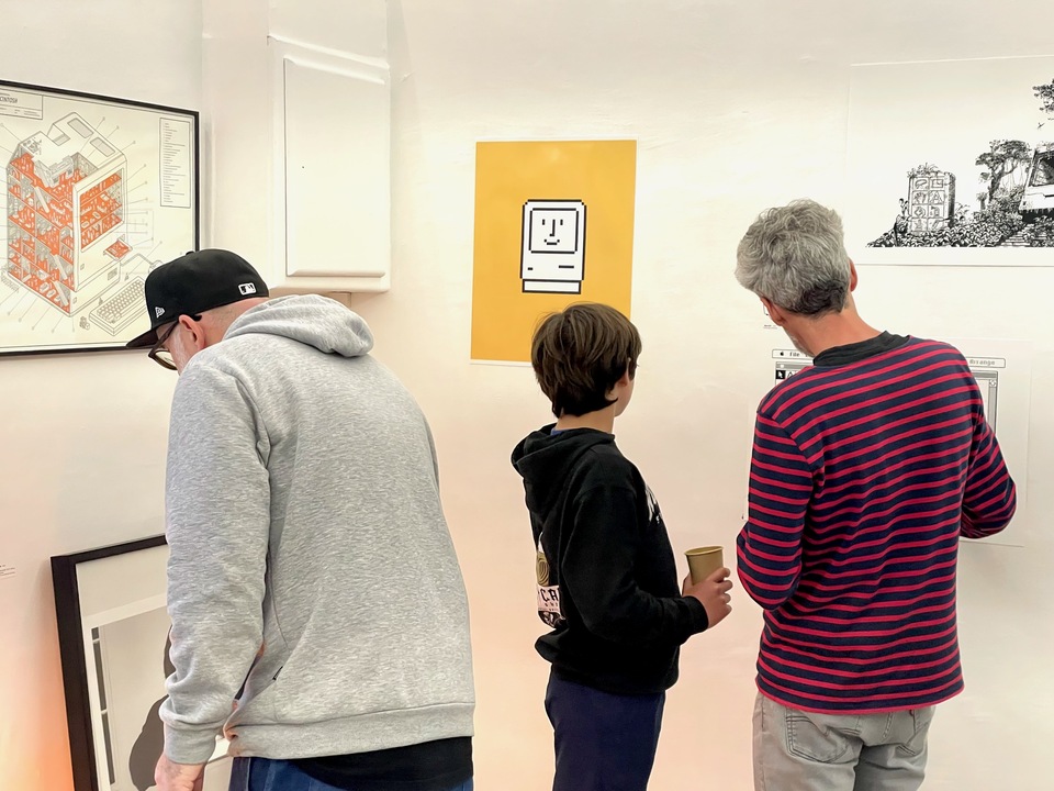 No exhibition without the traditional booklet/invitation, this time shaped like a Macintosh icon. It comes with a Mac-shaped keychain pendant and the famous cursor. We often forget to emphasize that it’s this little arrow of a few pixels that translates human-machine interaction on screen. Before the arrival of touch screens, it was the extension of the hand in digital space.