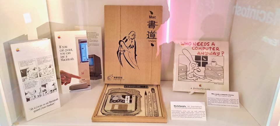 Strangely, just as I had finished installing the expo with one of my rare pieces, the Mac Calligraphy software from 1987, it started buzzing on social media among Apple collectors. We saw several copies appear like at the Apple Museum in Poland (that museum is incredible). Always very funny these coincidental competitions.