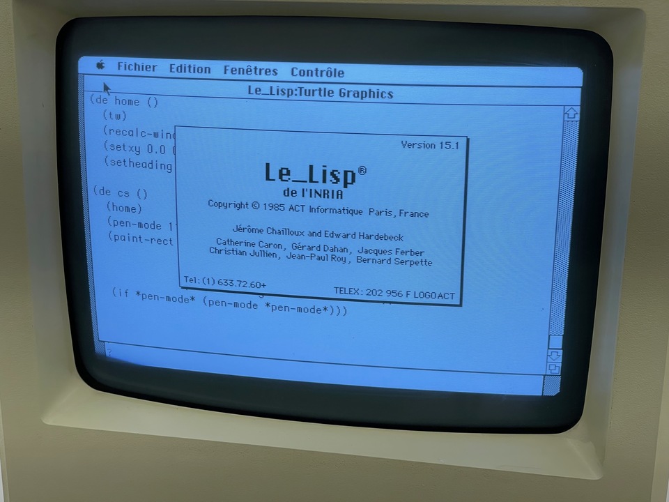 I’ve had this version of Le_Lisp for over 30 years, and I never imagined it could still work. Great emotional moment with my friend Robert when we launched the Tower of Hanoi program :D