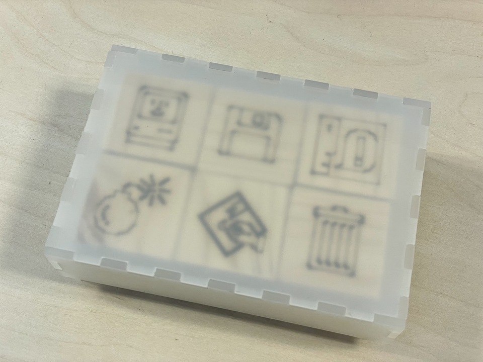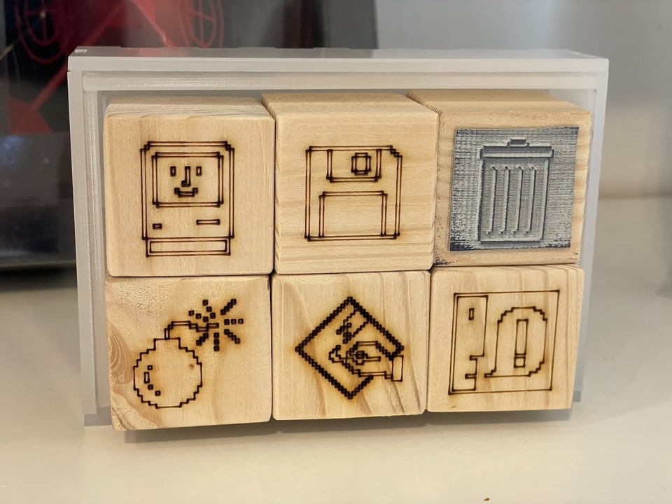 It’s therefore as a tribute to this great lady of graphic design and ergonomics that I created a series of 6 copies of ink stamp pads of 6 of her icons, accompanied by a wooden 6-sided die. If you’re interested in acquiring one of these copies, contact me.