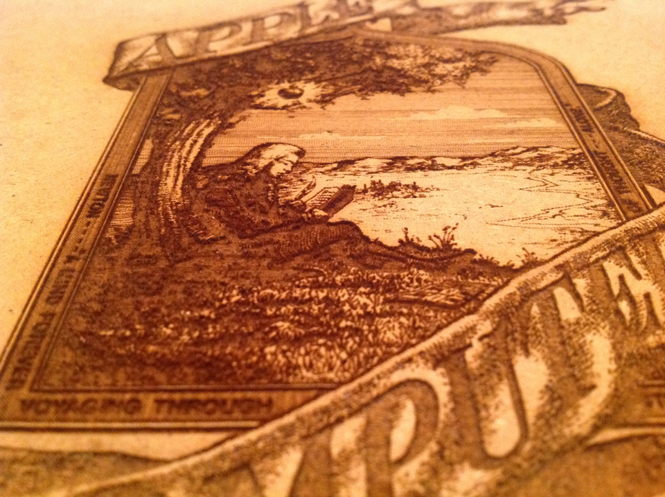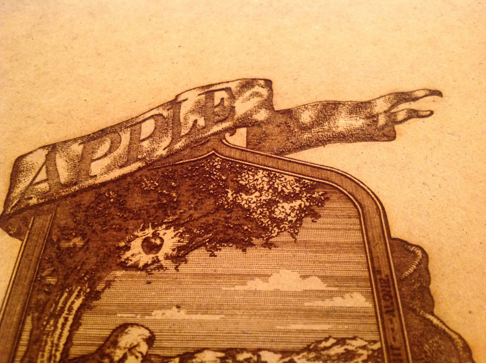 Gravure du premier logo Apple sur le boitier qui accueillera la réplique d’Apple 1 que nous sommes en train de réaliser avec mon ami Robert.