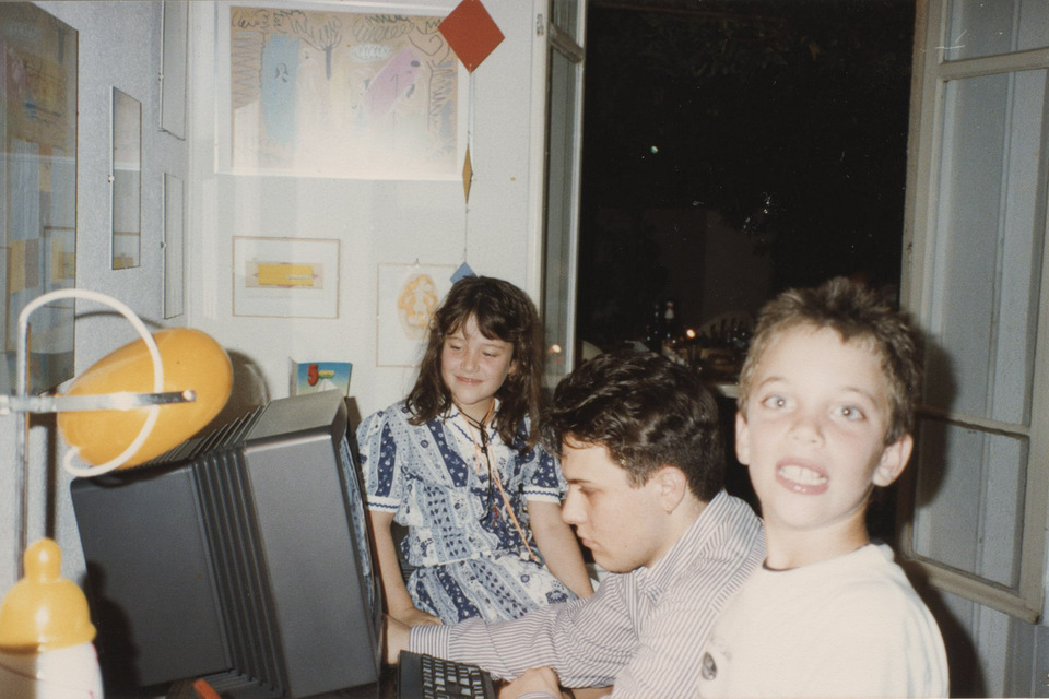 Chez mes parents avec mes cousins germains Pierre (10 ans) et Sophie (7 ans). Je leur montre comment on développe une application au moyen d’Interface-Builder. Pas sur qu’ils en aient retenu quoique ce soit, mais ça me fait un beau souvenir puisque les deux sont devenus des amis en grandissant et que Pierre est devenu comme moi Ingénieur de Recherche en calcul scientifique (mais par un parcours de physicien).