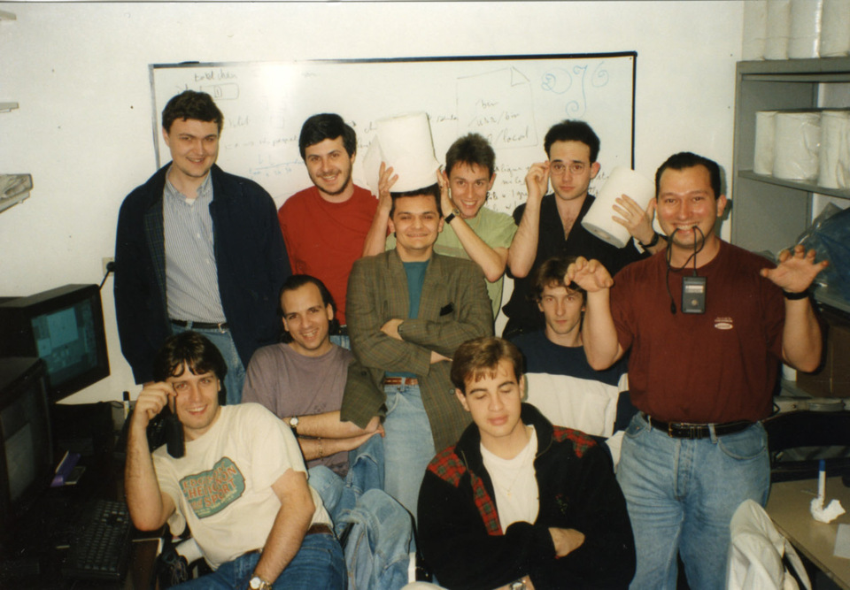 Sur la 1ère photo vous pouvez voir sur la table un portable PC 486 fermé avec un calendrier posé dessus. Il tournait sous NeXTSTEP 3.1 : notre rêve était de faire tourner NeXTSTEP sur un portable avec un résolution SVGA minimal pour travailler partout sans avoir à avoir des stations installées à chaque endroit et trimballer un disque externe. Quand j’ai ramené de San-Francisco la 1ère version de NeXTSTEP pour 486, nous nous sommes immédiatement mis à la recherche d’un portable PC. Je crois qu’on les a tous a testé, toutes les marques possibles, mais impossible d’en trouver un qui puisse faire tourner l’OS au delà du VGA à cause de chips graphiques trop spécifiques. Et un jour, on découvre une marque clone complètement inconnue en France importée par un gars de Nice depuis son appartement (pas de local commercial, pas d’enseigne, juste son salon). Nous en avons été très content. Par la suite nous sommes passés à la superbe gamme de portables Toshiba quand les drivers compatibles sont arrivés.