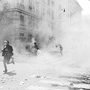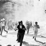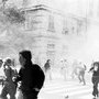 La police charge, les manifestants sortent du brouillard. Vendredi 20 juillet 2001.