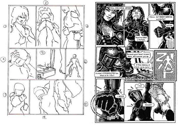 On a du mal à imaginer ce qu’a été le travail nécessaire pour réaliser 14 numéros d’un Comic sur ordinateur à cette époque. Charlie Athanas a travaillé sur les n° 9 à 14. Il explique sur son site ce qui a été le plus dur pour lui : « La partie la plus difficile n’était pas de dessiner avec l’encombrante souris du Mac Plus. Ce n’était pas non plus l’absence totale de mémoire, qui obligeait à avoir le logiciel de dessin (Fullpaint) dans le lecteur principal, le disque de travail de 800 Ko dans le lecteur externe, et d’échanger les disquettes pour utiliser les bibliothèques de dessins que vous aviez créés. Non, la partie la plus difficile était de ne voir que les 2/3 d’une page à la fois, à moins que vous la réduisiez à la taille d’un timbre-poste. Les couvertures et les pages de gardes, et particulièrement les doubles pages de garde, ont été un véritable cauchemar ».